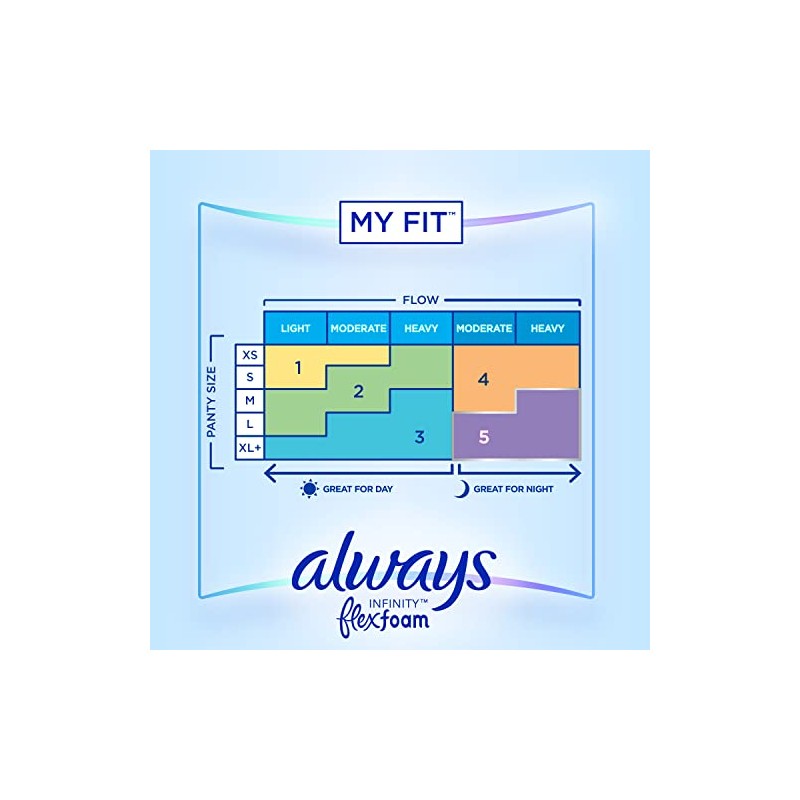 - Available in 5 Sizes: FlexFoam is designed for anybody and every body. Use the Always MyFit Sizing Chart to find your perfect fit