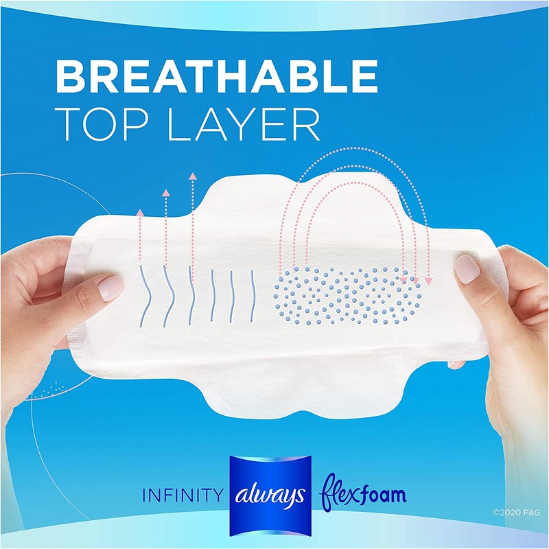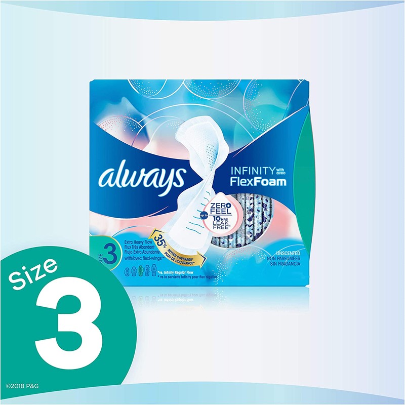 - Zero Leaks and Zero Feel is possible with Always Infinity FlexFoam Extra Heavy Flow Absorbency period pads