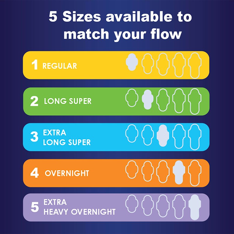 • Did you know that 60% of women are wearing the wrong size pad? This can lead to leaks. Step up in size to help stop leaks