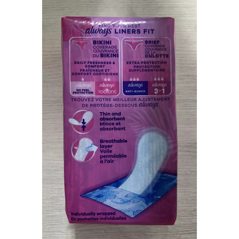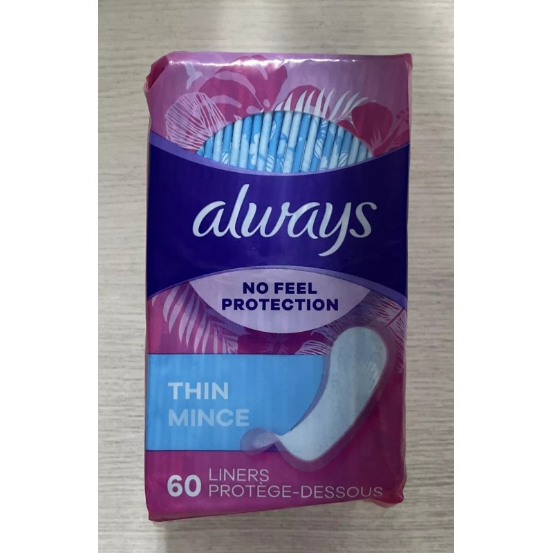 Always No Feel Protection Liners 60 Count, Thin & Absorbent Individually Wrapped.