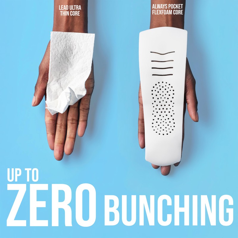 UP TO ZERO LEAKS, ZERO FEEL, & ZERO BUNCHING with Always Pocket Flexfoam Feminine Pads