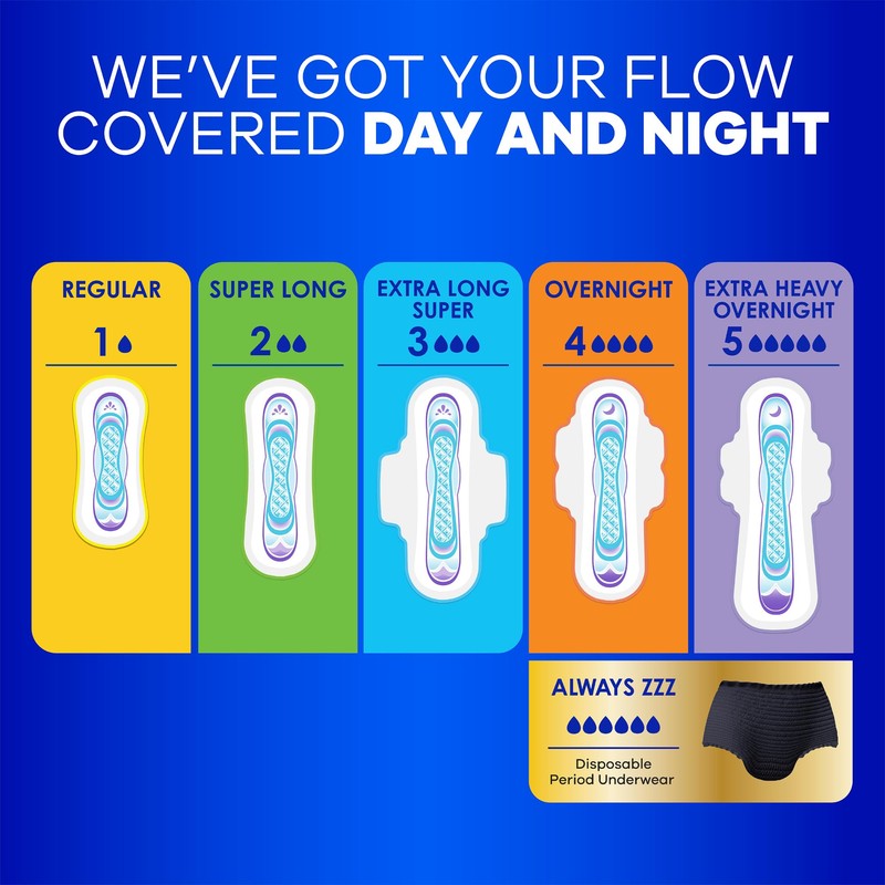 - ALWAYS Ultra Thin, Size 2, Super Pads Without Wings have a flexible design to protect comfortably and move with you.Soft cover absorbs quickly and gives you a long-lasting clean-and-dry feeling.ALWAYS gives puberty education and pads to millions of girls around the world to help them stay confident