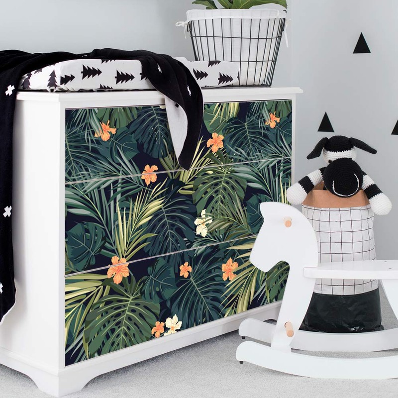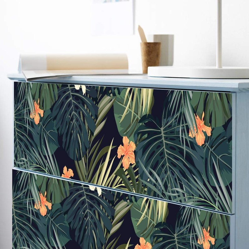 Alwayspon Tropical Decals for MALM Dresser, Removable Drawer Front Stickers, Peel and Stick Furniture Sticker Skin, 3 Pcs x 31.6"x7.9"