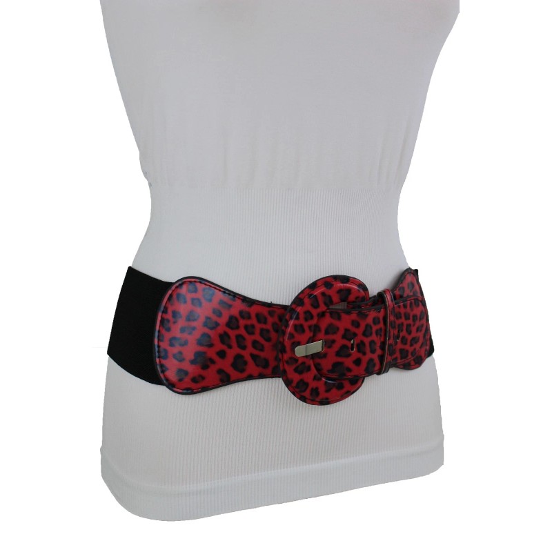 Alwaystyle4you Women Wide Red Corset Elastic Waistband Belt Leopard Animal Print Size M L XL