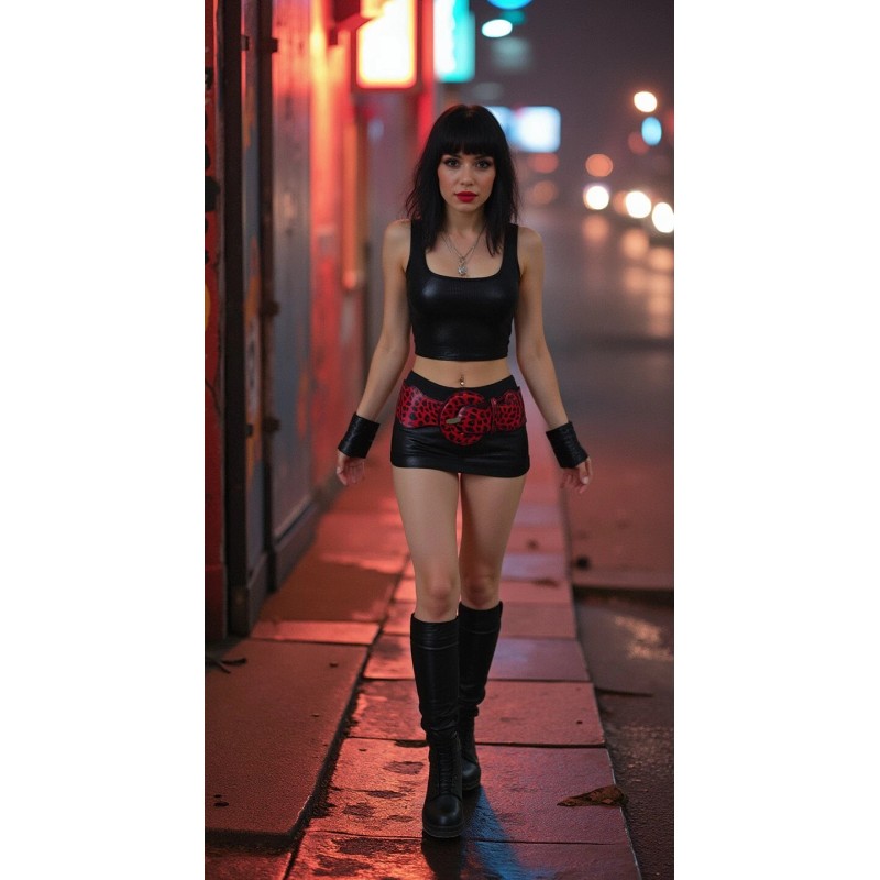 Color: Red, Gray, Black Animal Print Faux Leather + Black Elastic Fabric Waistband