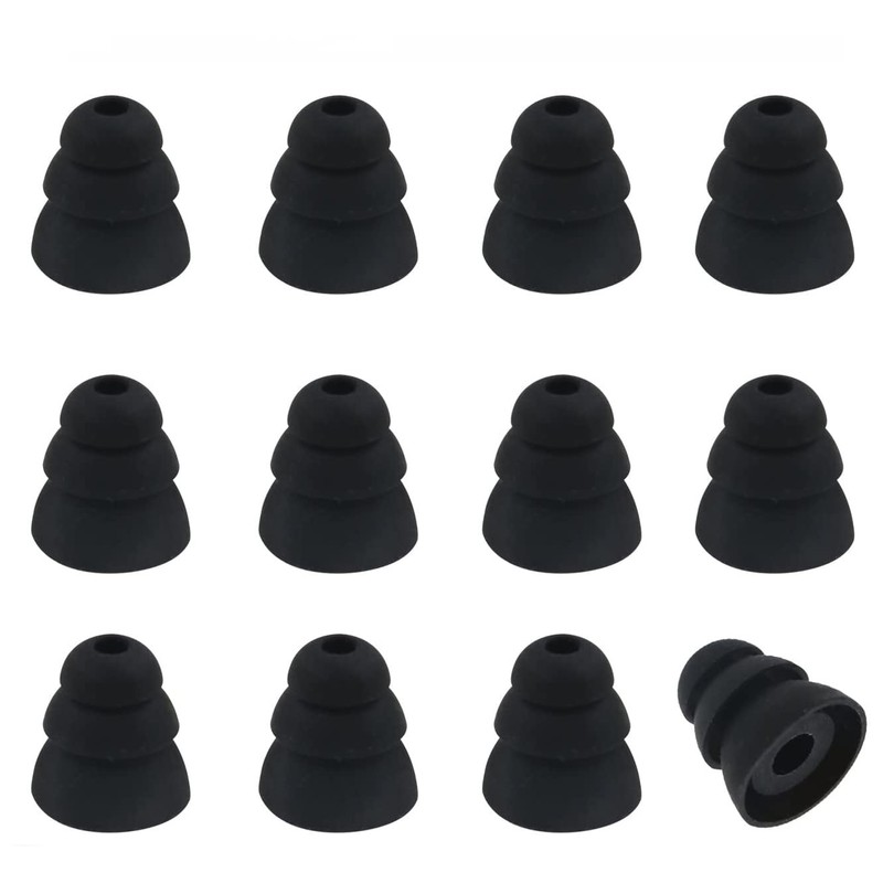 ALXCD Triple Flange Ear Tips Compatible with Beats Fit Pro/Studio Buds/WF-1000XM4/ WF-C500/ PB Pro, 6 Pairs Medium Size Triple Flange 3 Flange Noise Isolation Silicone Replacement EarTips, M Black