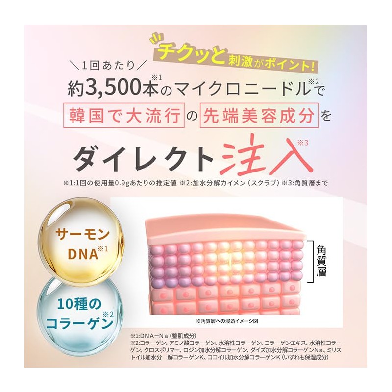 - (Can be delivered deep with micro needles) Approximately 3,500 micro needles per time deliver the tip beauty ingredients directly to the depth. Up to the stratum layer