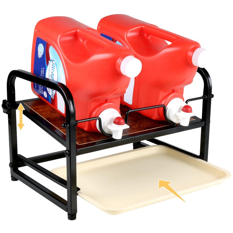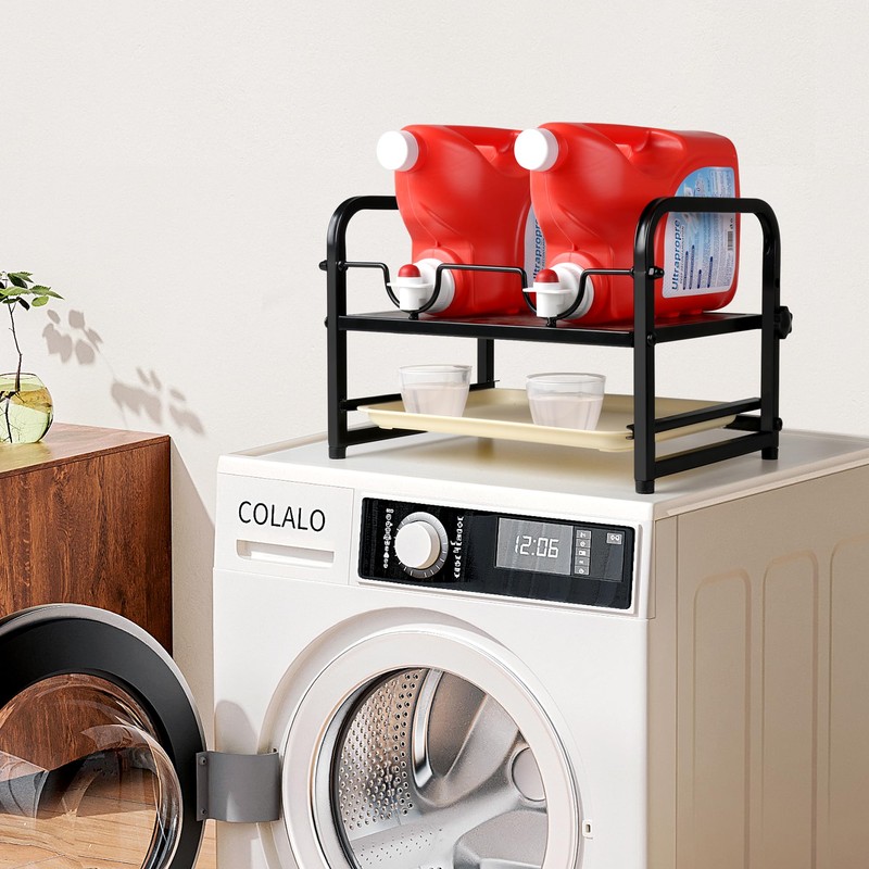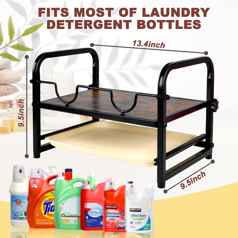 - Durable and VersatileMade of high-quality wood and iron frame, which is sturdy and has a strong load-bearing capacity to hold two bottles of liquid laundry detergent concurrently. It can be used as a laundry room decor to store other laundry supplies.