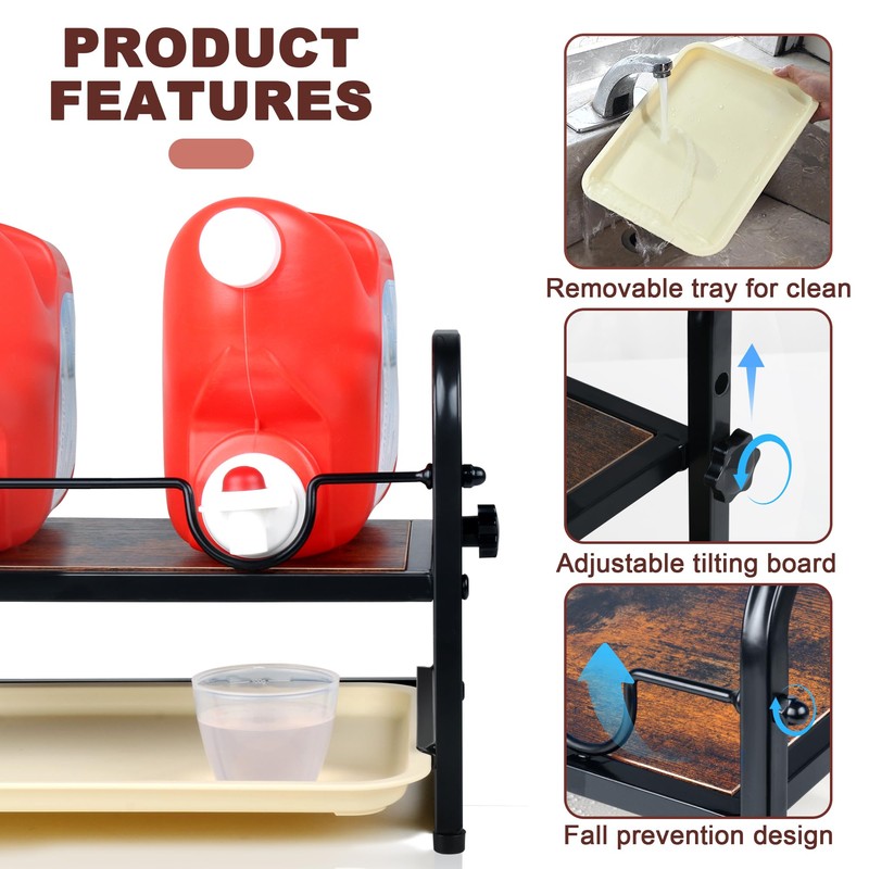 - Drip Tray & Adjustable Tilting BoardThe drip tray catches any leaks or spills, safeguarding your washing machine and floor from soap or detergent drips. Plus, the adjustable angle shelf and board for the detergent bottle ensures a smooth flow of detergent, even when it's running low. No more hassle of pouring by hand and simplify your laundry routine.