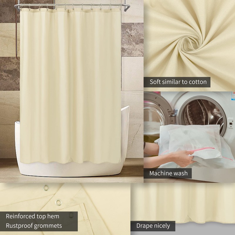 ALYVIA SPRING Cream Fabric Shower Curtain Liner Waterproof - Soft & Light-Wei...