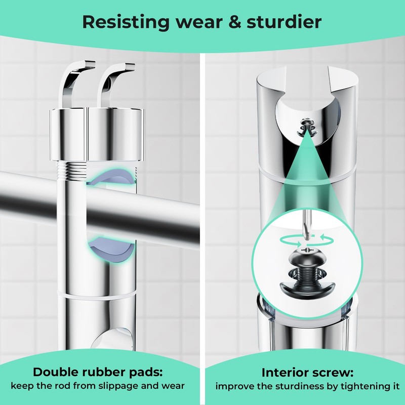 - ??Breitere Kompatibilit?tDiese Duschhalterung passt auf die meisten Standard-Duschk?pfe von 20,5-23,5 mm und ist anpassbar an runde Duschschienen von 16 bis 27 mm Au?endurchmesser.