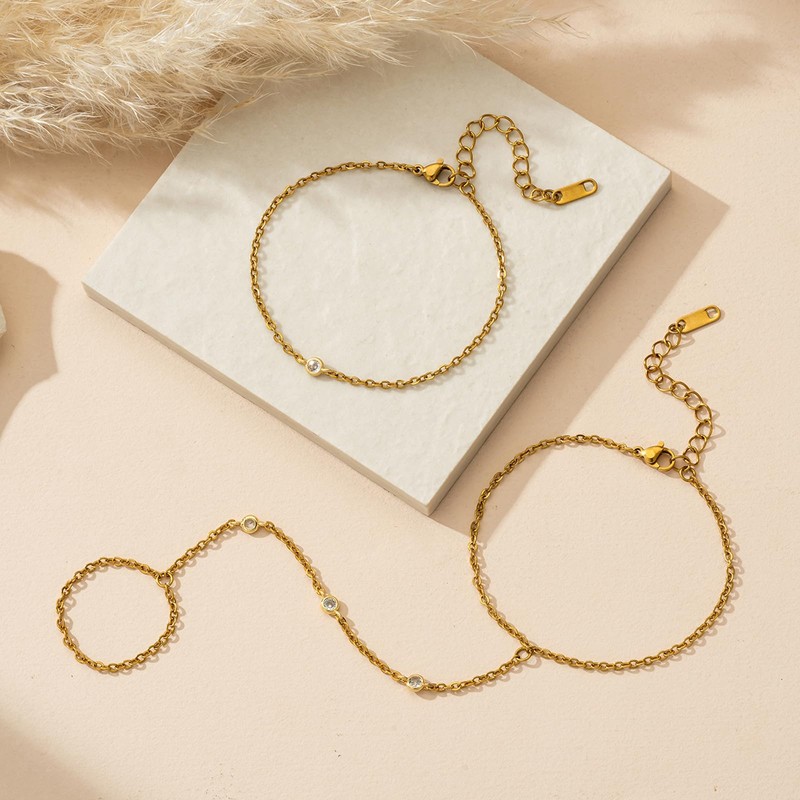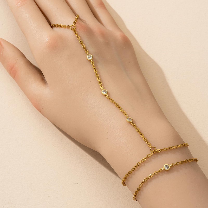 - Statement Design:Elevate your style with this uniquely designed hand chain that gracefully extends from the wrist to the finger. Adorned with four 4mm cubic zirconia stones, it delivers the luxurious sparkle of simulated diamonds for an eye-catching yet elegant look.