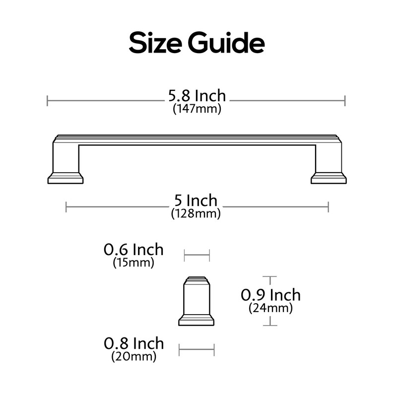- Overall Length: 5.8" (147mm), Hole Centers: 5" (128mm)