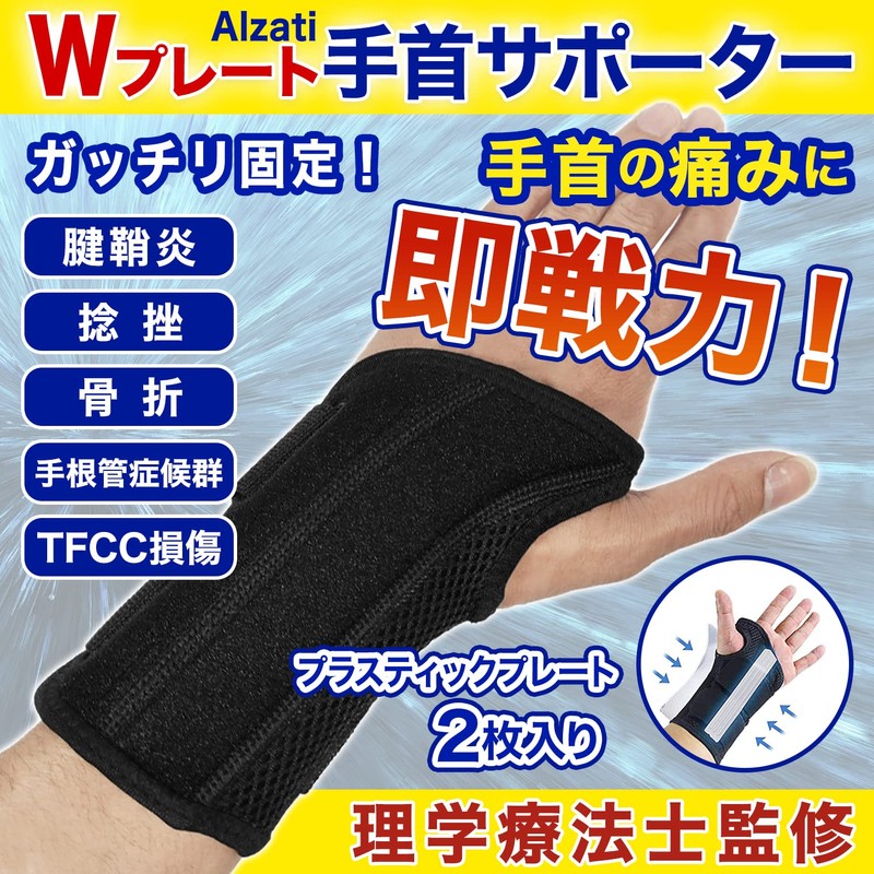 Alzati 手首サポーター 【理学療法士監修】男性 女性 固定 サポーター プレート入り 吸汗速乾 スポーツ 家事 育児 パソコン/スマホ操作 1個入り 左手用 L/XLサイズ