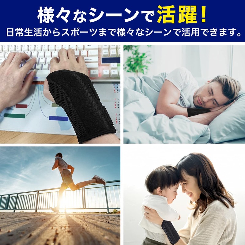 - ★【抜群のホールド力】手のひらと手の甲にあるプレートは金属に近い硬度と耐性を持つ特殊プラスチック素材を採用。抜群の固定力で手首の動きをしっかり抑制します。また、軽量なので動作がしやすいです。そして、金属素材を使用しておらずソフトな使い心地なので、子育てで赤ちゃんを抱っこする時も快適です。さらにプラスティックプレートなので、取り外しせずに丸洗いで洗濯できます。※手洗い、自然乾燥推奨