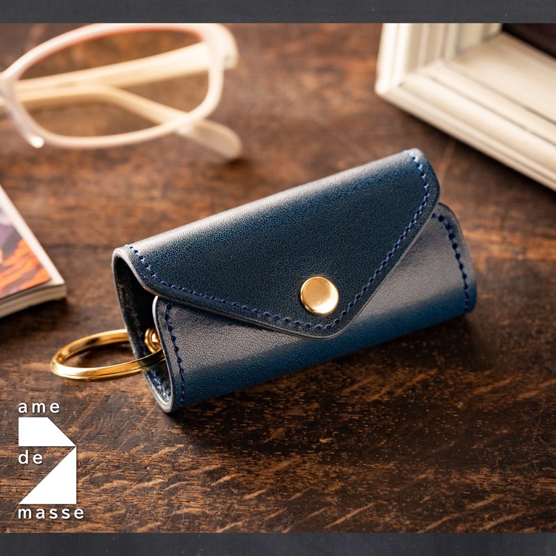Am De Mas KC-003 Key Case, Tochigi Leather, Genuine Leather, Made in Japan, Smart Key, Keychain, Handmade, Simple, oriental blue