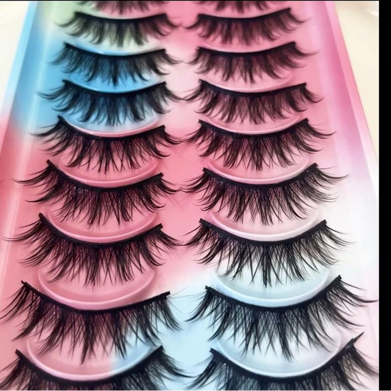 AM RONG MAGIC Eyelashes Natural Look Faux Mink Lashes Pack Handmade Fluffy False Eyelashes 10 Pairs Cat Eye Lashes,Reusable Lashes (M-01)