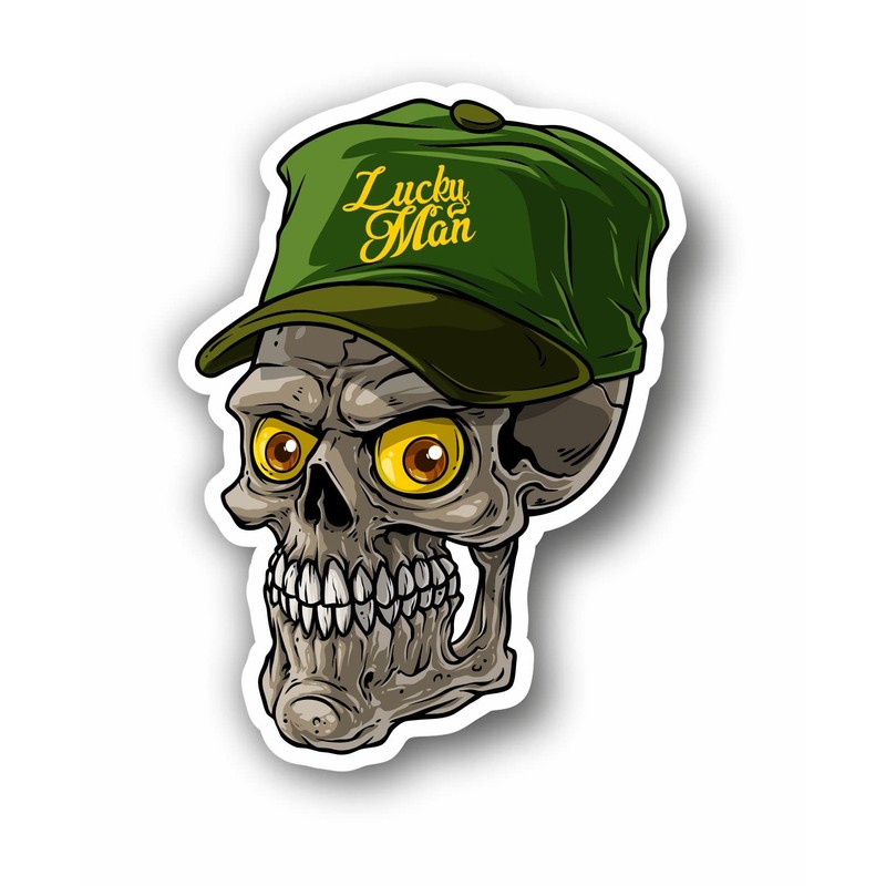 AMA SHOP Sticker PVC Shaped Skull with hat mod.2 | Stickers for Car | Sticker for Helmet, Motorcycle, Camper | Car tuning| laptop, pc