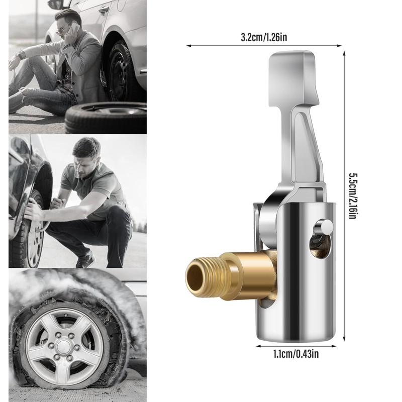 - Hands-free and without leakage: This premium air chuck with 90 degree locking and standard tyre valve fine thread has been specially designed to solve the annoying air leakage problem by converting the screw-on (rotatable) air chuck of the tyre inflator. Simply place it on the valve stem of the tyre, lock the clamp and then start hands-free inflation of the tyre with its great sealing performance.