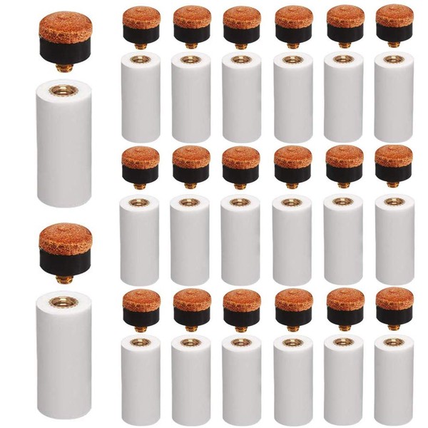 - Material: the tip of the billiard cap is made of leather, the screws of the ferrule are made of plastic + copper, have a long service life and can protect your billiard stone. The package includes 20 pool cues and 20 leather heads.