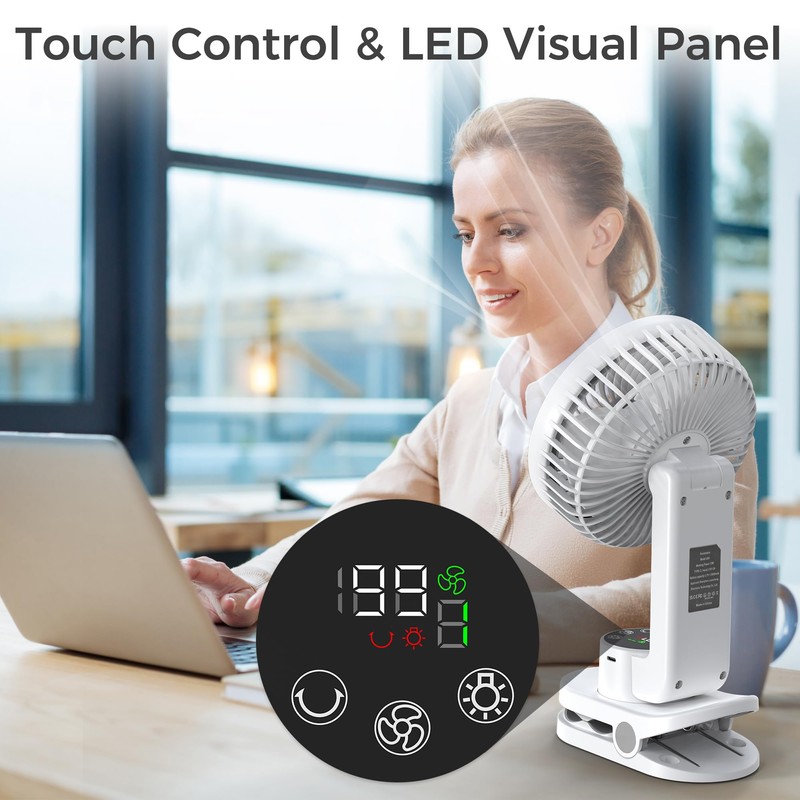 - Touch Control & Display Panel: The at-a-glance digital display shows real-time info on remaining power, working gear and charging status, which makes it easy to monitor the fan's battery life and plan charging ahead of time, ensuring you stay cool during RV/road trips, beach days, international travel or camping adventures