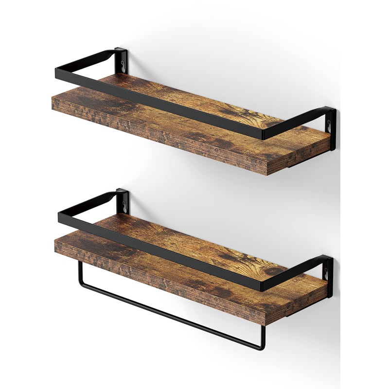 AMADA HOMEFURNISHING Floating Shelves Wall Mounted, Wall Shelves for Bathroom, Kitchen, Bedroom, Storage Shelf with Towel Bar, Set of 2, Rustic Brown - AMFS01V