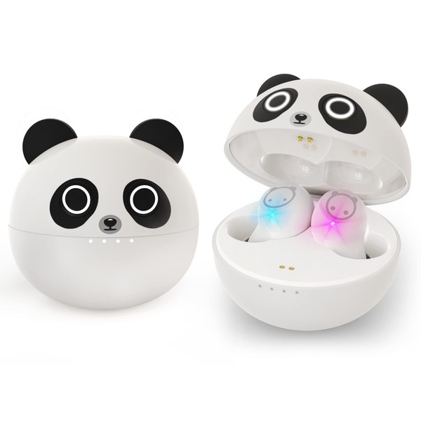 AMAFACE Panda - Auriculares inalámbricos con funda de carga IPX5, impermeables, Bluetooth, con sonido bajo, con micrófonos, control táctil, auriculares intrauditivos para deportes..