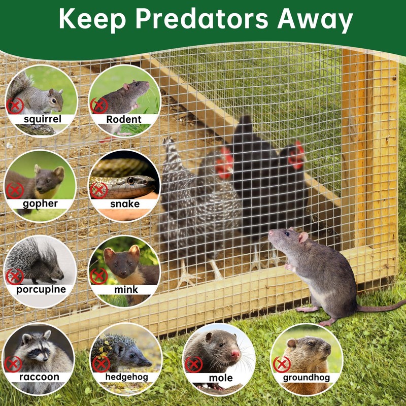 - 1/4 inch hardware cloth, welded wire ideal for chicken coop, snake fence, opossum rehab cages,chicken coops run,rabbit fencing, flower beds, wide gutters guard, fruit trees, vegetable garden, to keep out small critters such as voles, gophors, racoons,etc.