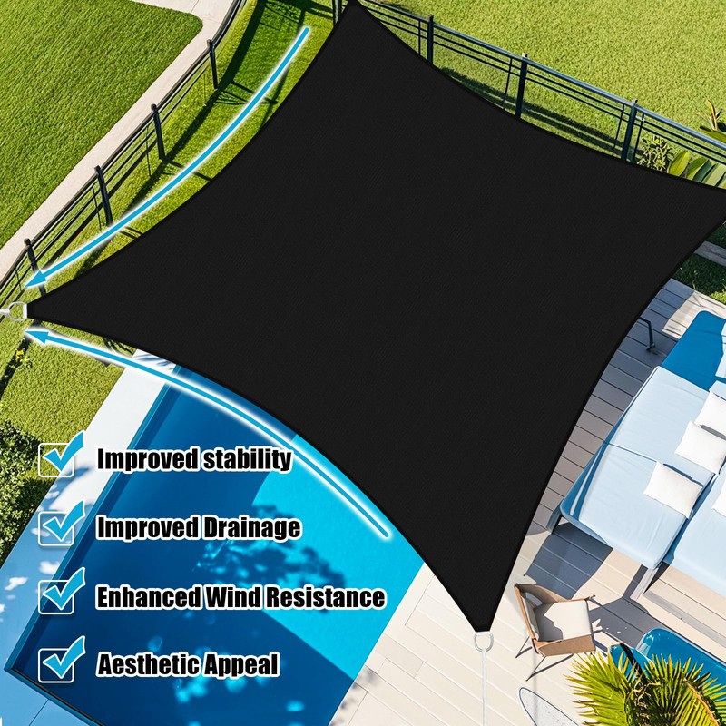 - Application: Suitable for patios, lawns, gardens, BBQ areas, parks, pergolas, pools, and carports. Combining functionality and aesthetics, the shade sail is an ideal shading solution