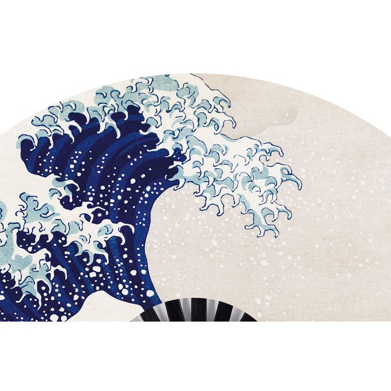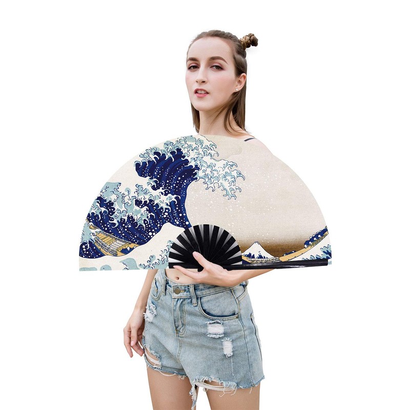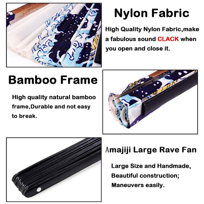 Amajiji Large Folding Fan, Chinease/Japanese Bamboo and Nylon-Cloth Folding Hand Fan, Hand Folding Fans for Women/Men, Hand Fan Festival Fan Gift Fan Folding Fan Dance Fan (Sea Wave)