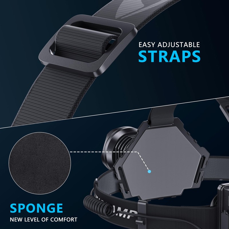 - 【90°Adjustable & Six Modes】AMAKER headlamp is specially designed to be 90°adjustable, each degree is very solid, allowing you to see the full range of vision from front to back, the headlamp has six light modes such as high, medium, low, strobe,sos and tactical zoom, and it also has a red backlight, you can switch modes according to your different environment to fully achieve the outdoor effect you want.