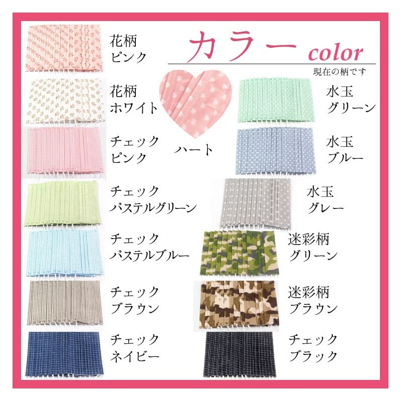 • ■おしゃれに楽しく水玉、花柄、チェック、迷彩柄、ハートモチーフの不織布マスク