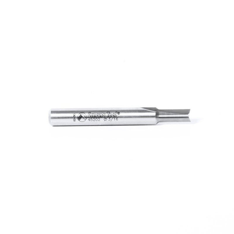 Amana Tool - 45202 Solid Carbide Cutting Edge Straight Plunge CNC Router Bit for Wood High Production 3/16 Dia x 7/16 x 1/4 Inch Shank