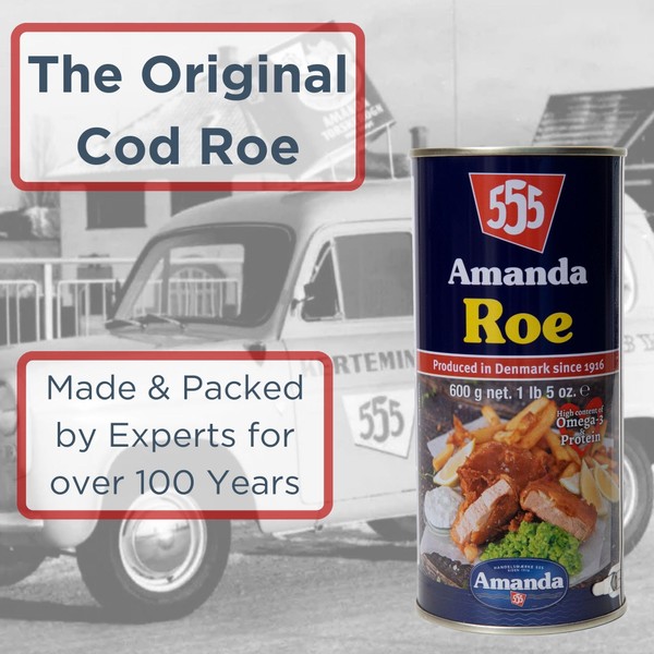 Amanda Amanda 555: Tinned Cod Roe | The Original Cod Roe | High in Protein Omega 3 Vitamin D & B12 | MSC Certified, Sustainable, and Delicious | Perfect for Home or Fish & Chip Shops (600g)
