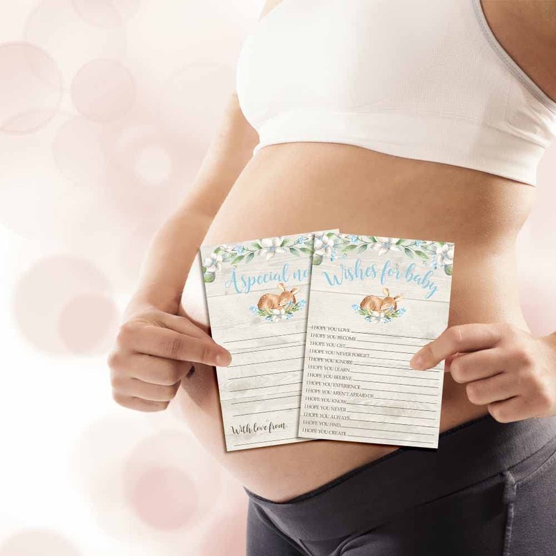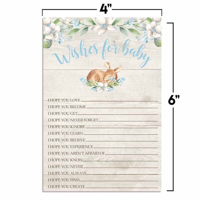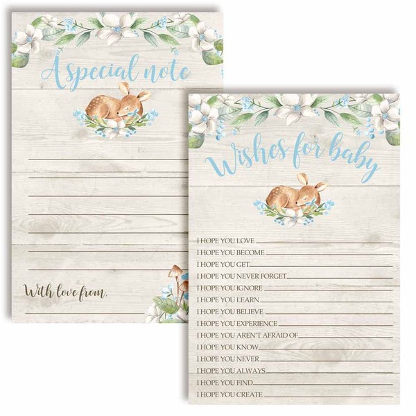 Amanda Creation Little Deer Woodland Boy Baby Wishes Cards 20, 4"x6" - Great Keepsake and Fun Activity for Baby Showers - Wishes for Baby Keepsakes Last Generations - Fill-In, Double-Sided Cards