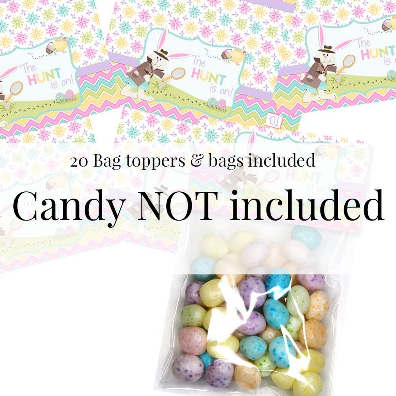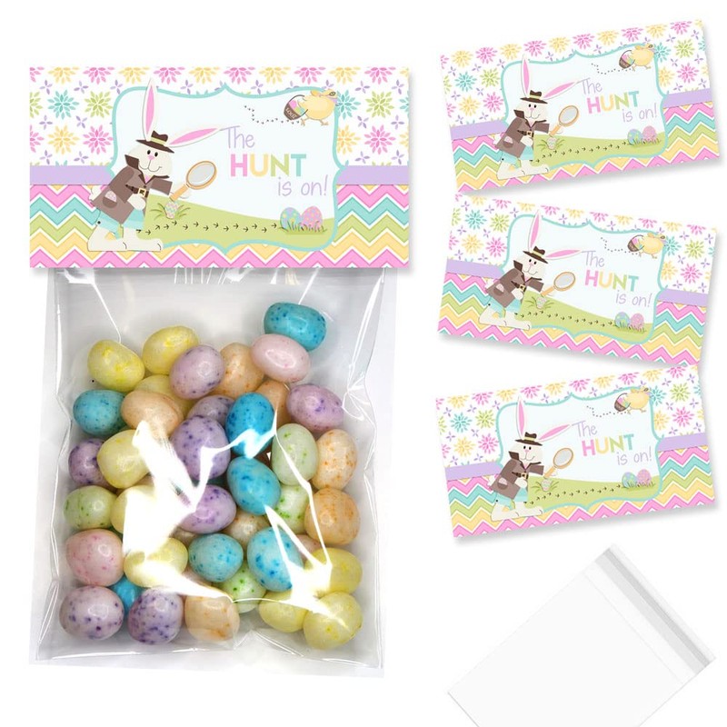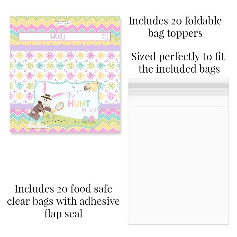 *** Bigger... Better. Presenting The Hunt Is On Bunny Detective Easter Egg Hunt Themed Toppers. Set of 20 foldable bag toppers (4.25" x 2.25" when folded) plus 20 food safe self-adhesive bags (~4" x ~6")***