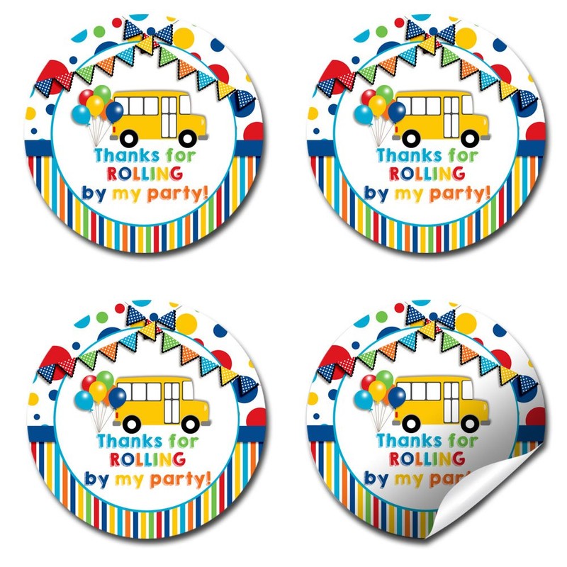 Amanda Creation Wheels On The Bus Thank You Sticker Labels 40 2" Party Circle Stickers by AmandaCreation Great for Party Favors Envelope Seals & Goodie Bags