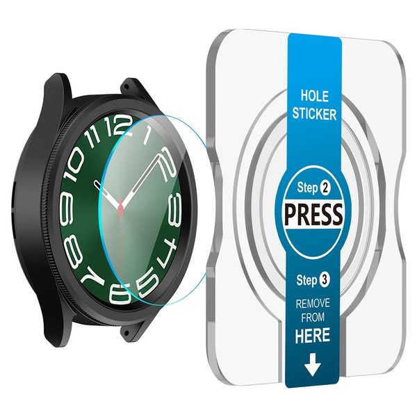 Amanecer [2 Pack] Tempered Glass Screen Protector with Auto-Alignment Installation Frame Designed for Galaxy Watch 6 40mm 44mm & Glaxy Watch 6 Classic 43mm 47mm, Waterproof Clear HD Film Protective