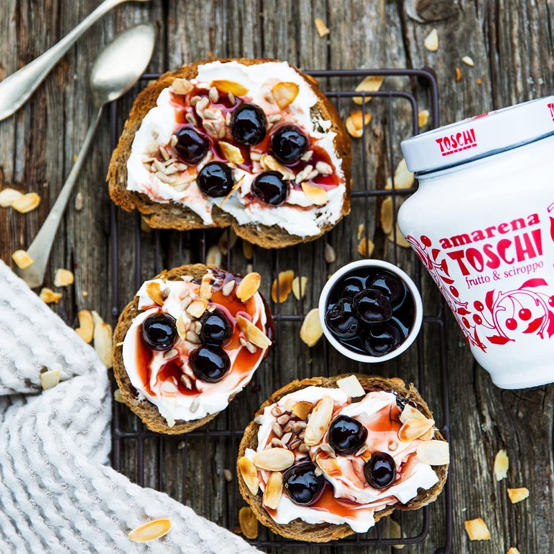 - SAVORY RECIPES: Because of their sweet and sour flavor profile, Toschi Amarena Cherries pair well with savory foods. Enjoy a crostini with brie or goat cheese topped with these Italian cherries on your next cheese board. For dinner, use Toschi Amarena to dress roast duck and potatoes.