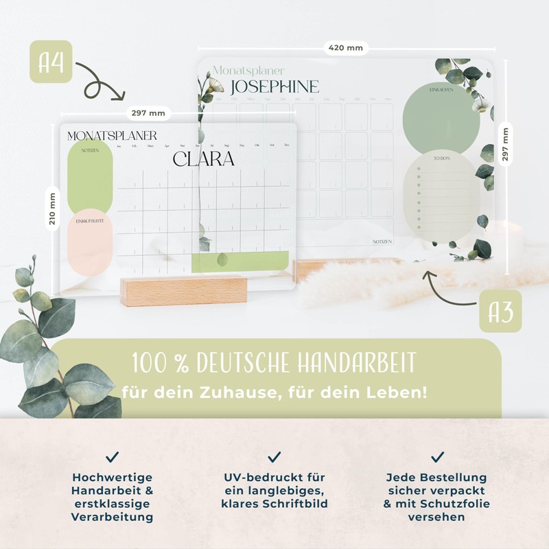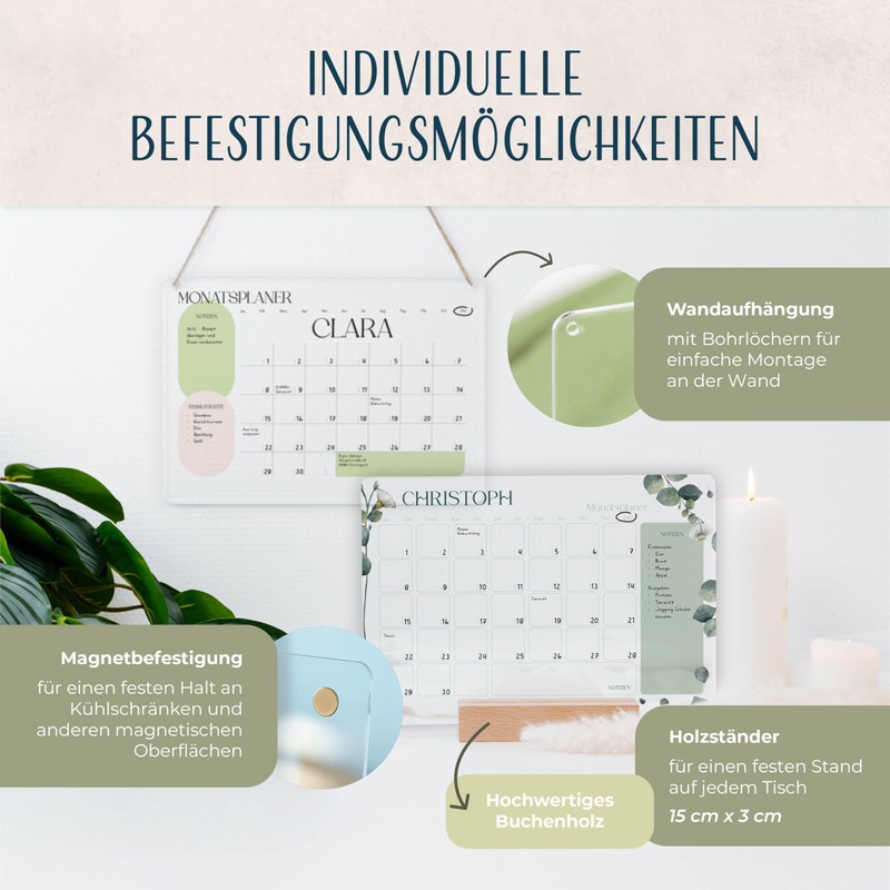 - Personalised as desired: choose motifs, adjust the text and choose between wall hanging or a stylish stand - your personal calendar of choice.