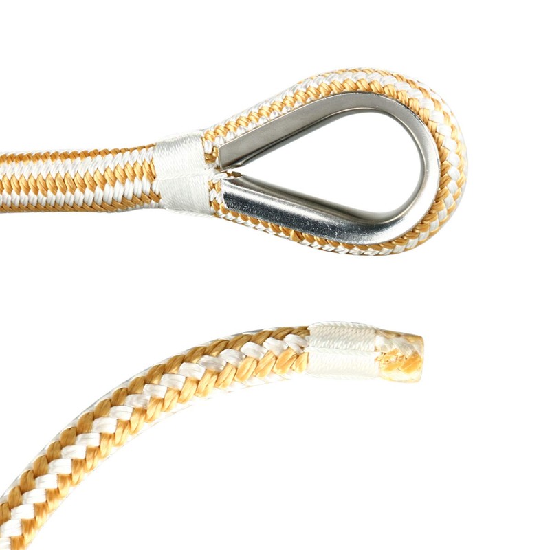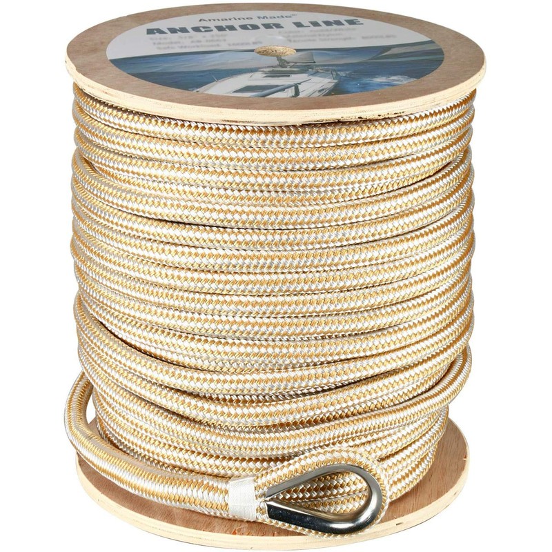 Amarine Made Heavy Duty Double Braid Nylon Anchor Line with Stainless Steel Thimble-White/Gold Color 5/8 inch Thickness 200 ft