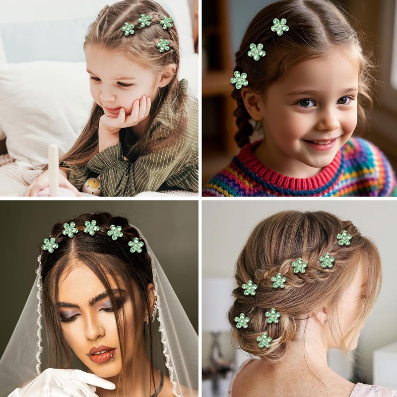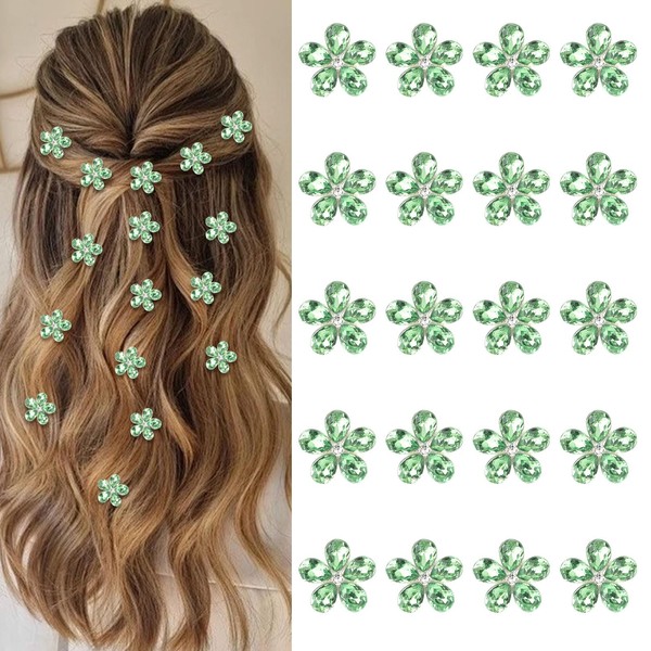 Amariver Small Hair Clips 20pcs Green Mini Hair Clips for Girls Rhinestones Flower Hair Pins Flower Girls Decorating Wedding Bridal Hair Barrettes Cute Accessories for Women girls