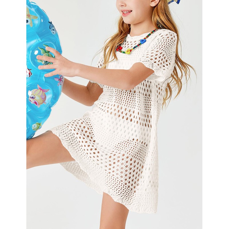 - Features: Swimsuit cover-up for girls are designed with a crew neck, short sleeve, loose fit, and hollow out. You can easily create a cute look, the bikini cover for little princess doubles as a beach dress and cruise wear essential