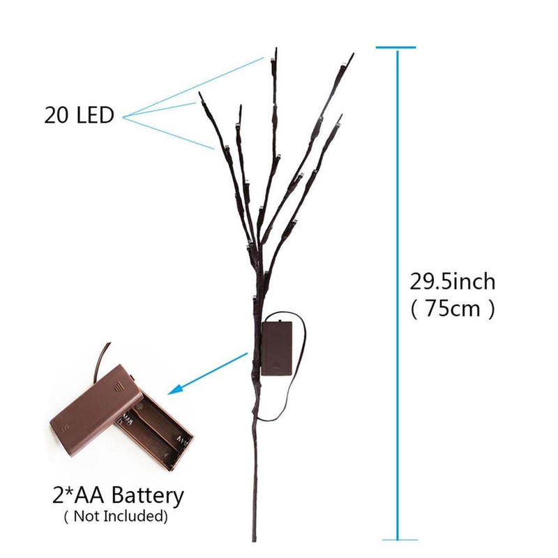 3. The branch is 20 inches tall, and 20 led warm white color light mini bulbs.
