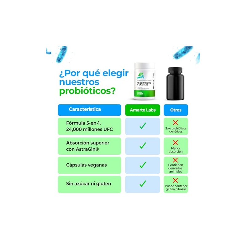 AMARTE LABS - AMARTE LABS Probióticos 5-en-1, con Enzimas Digestivas, Prebióticos, Glutamina y AstraGin. 24,000 Millones UFC, 7 Cepas Premium. Digestión Ligera, Absorción Superior y Salud Intestinal. 60 Cápsulas Veganas.. 🚀 Producto más vendido con miles de clientes satisfechos. Diseño ergonómico y funcionalidad excepcional. ⏰ Oferta por tiempo limitado. Ideal para quienes buscan lo mejor en calidad y estilo. Producto auténtico con satisfacción total asegurada. ¡No te quedes sin el tuyo y aprovecha esta oportunidad única!