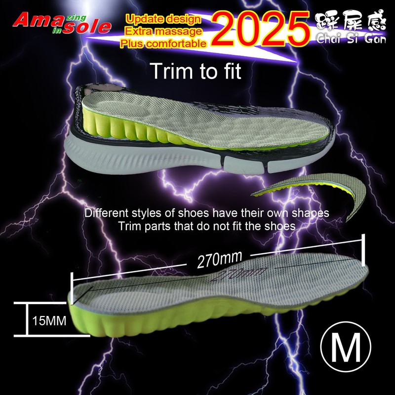 Amasole ® 2025 "Chai Si Gan" super soft insole, specially design for high jump sport,height Increase 15-35mm, shock absorption,high elasticity for Men or Women (DS green-grey, M 15MM)