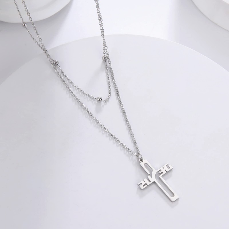 Amaxer Ichthys Halskette, Kreuz, Jesus, Christus, Engel, Liebe, Fisch, christliches Symbol, Charm-Anhänger, Halskette für Frauen, christlicher Schmuck, Edelstahl, doppellagige Perlenkette, M,