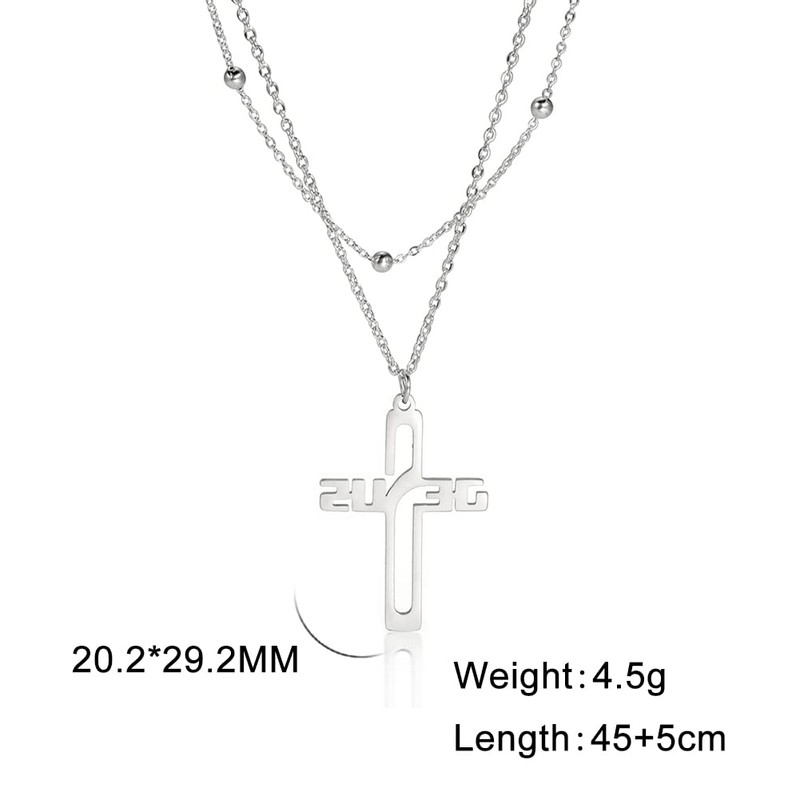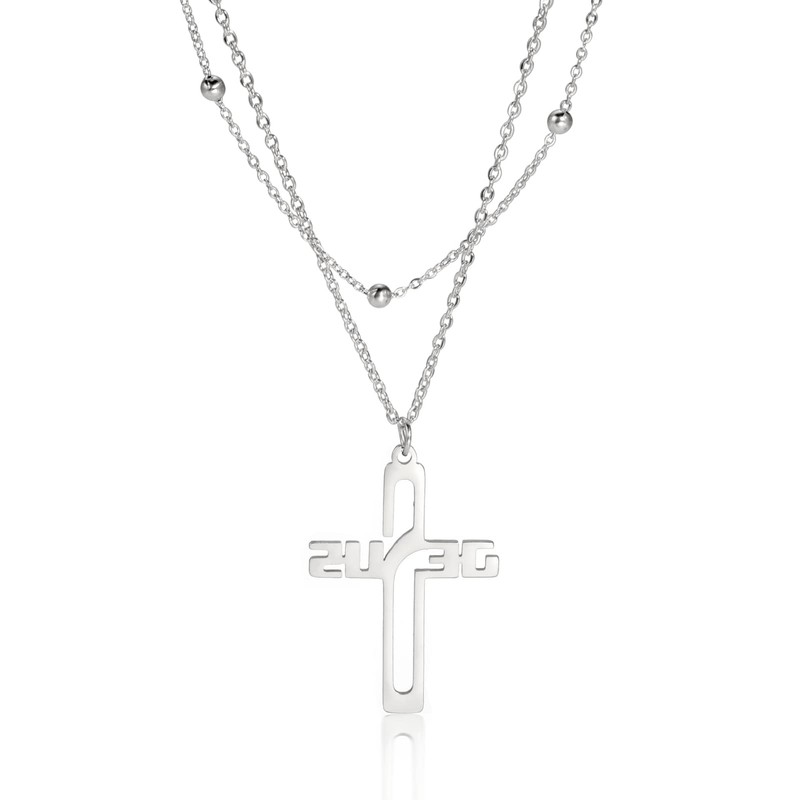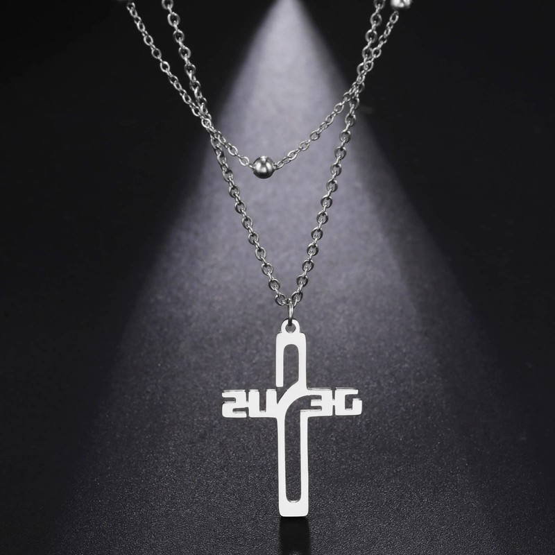 Amaxer Ichthys Halskette, Kreuz, Jesus, Christus, Engel, Liebe, Fisch, christliches Symbol, Charm-Anhänger, Halskette für Frauen, christlicher Schmuck, Edelstahl, doppellagige Perlenkette, M,