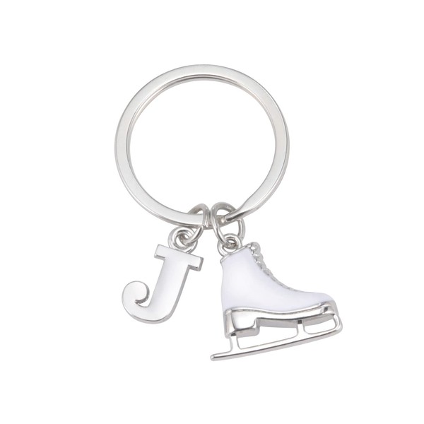 Amaxer White Enamel Ice Skates Shoes Pendant Keyring Alphabet Letters A-Z Ice Skating Stainless Steel Keychain for Unisex, J, Medium