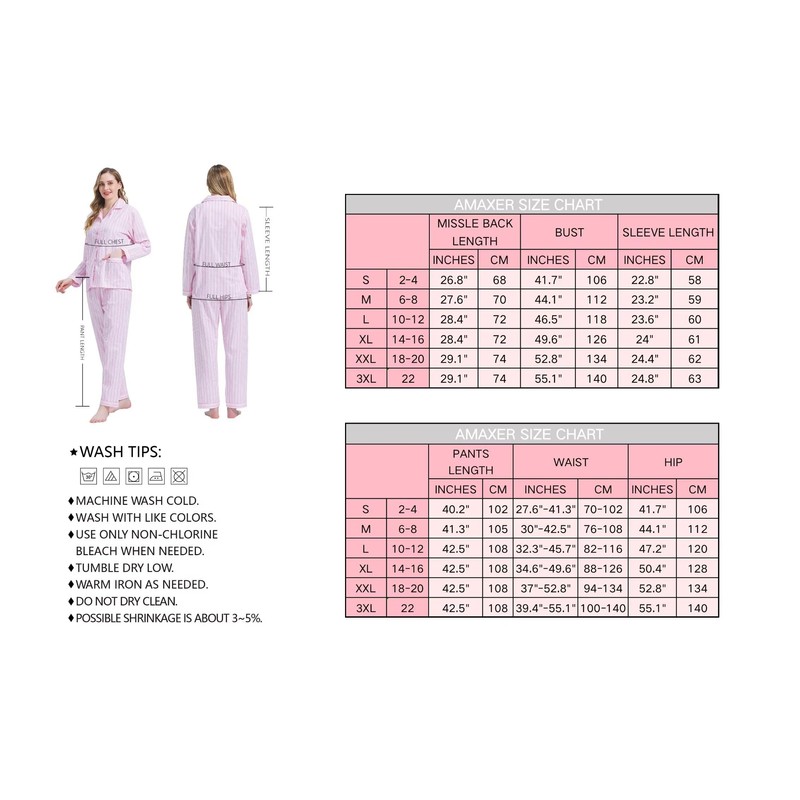 - [Classic and Varied Designs] The delicate patterns of the 2 piece women’s cotton pajama sets are designed by a professional designer team. From the elegant floral prints to the sweet hearts; from the vibrant pink to the serene blue, we offer a wide variety of pajamas! The Amaxer women's cotton pjs sizes range from S to XXL. Please refer to the size chart for more details.